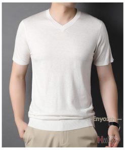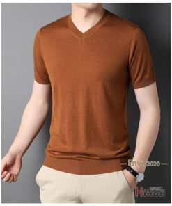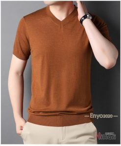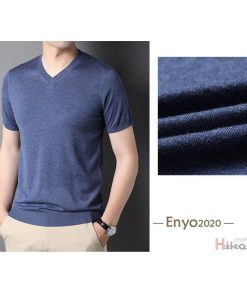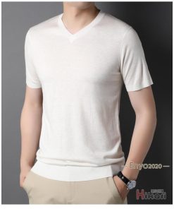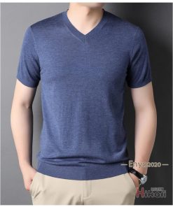 サマーニット メンズ Vネック ニット 半袖ニット サマーセーター ニットTシャツ 無地 半そで 紳士服 ゴルフウェア 細身