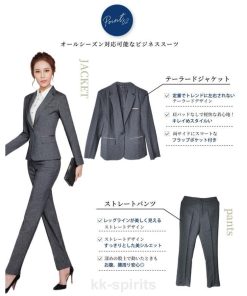 しわの出来にくい素材だから、長時間座りっぱなしのお仕事の方も安心で、シンプルデザインが女性らしい。