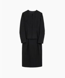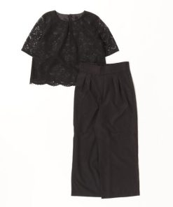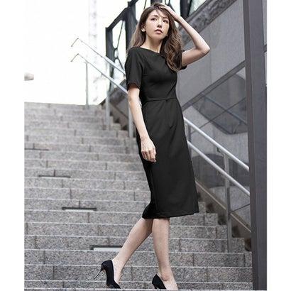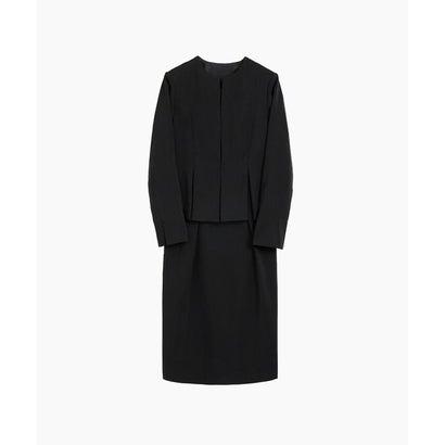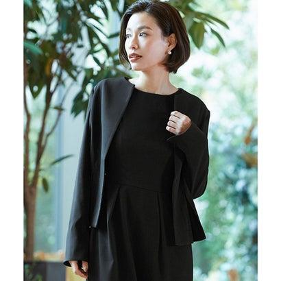 フロリア Flolia 【自宅で洗える】ノーカラージャケット&コクーンワンピースの2点セットアップセレモニースーツ (ブラック)