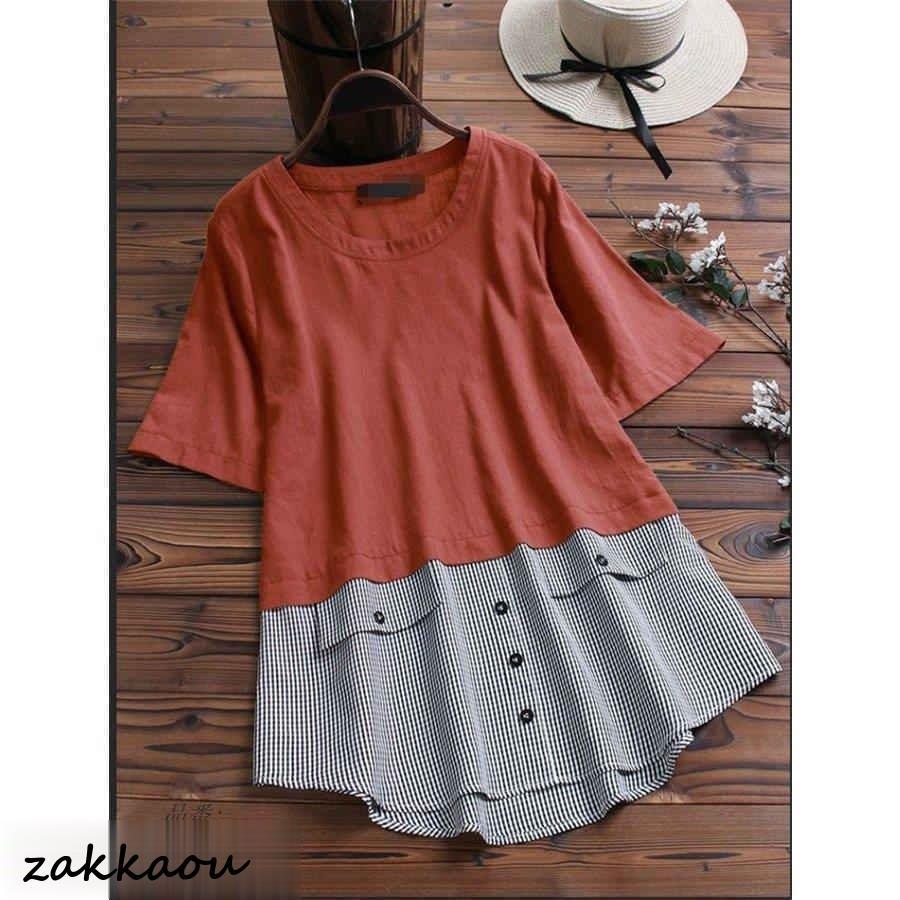 ブラウス レディース トップス ロングブラウス シャツブラウス 半袖 チュニック tシャツ 夏 半袖tシャツ コットンシャツ チェック 繋がり カットソー 大人 可愛い ゆったり 体型カバー ロングシャツ おしゃれ 夏 夏tシャツ 夏ブラウス カジュアル 大きいサイズ 大人 ママ コーデ オフィス 通勤 OL 20代 30代 40代 50代 夏物 ママブラウス ママコーデ オシャレ カジュアル