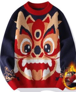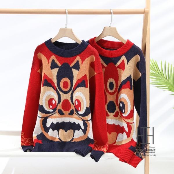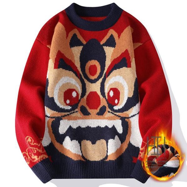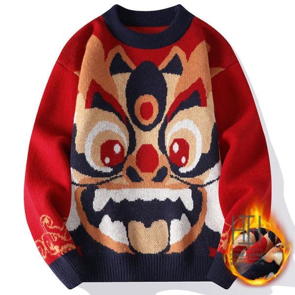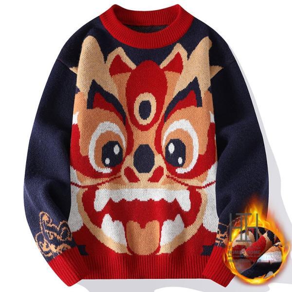 ホームアイホーム セーター メンズ ジャガードセーター 動物柄セーター ニット 長袖 丸首 暖かい 保温 トップス インナー かわいい 柔らかい カジュアル ニットセーター 秋冬