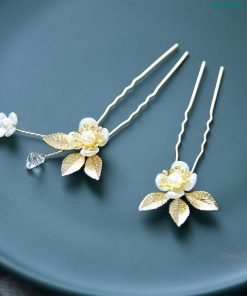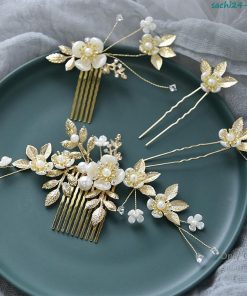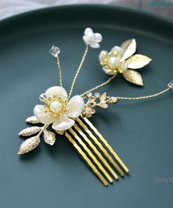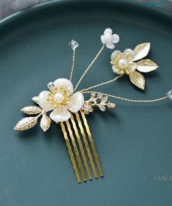 花&リーフモチーフのビジューとパール ?ラインストーンを丁寧にはめ込んだヘアコーム?ヘアピンのセットです。