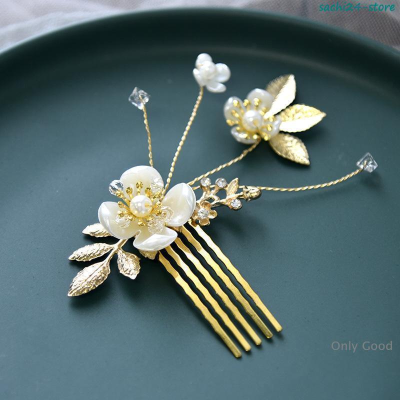 髪飾り 4点セット かんざし 簪 ヘアコーム ヘアピン 花 ボタニカル ゴールド 和装 洋装 結婚式 着物 成人式 卒業式 フォーマル ヘアアクセサリー 髪留め