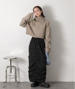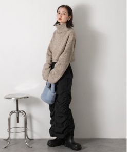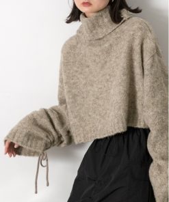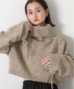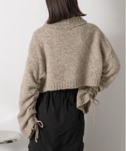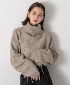 参考商品名:ハイネック・袖ドロスト ブークレショート丈ニット