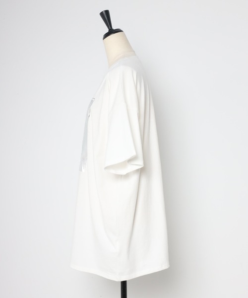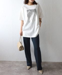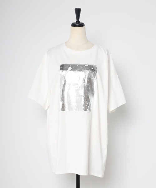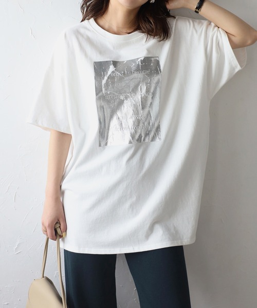 キーワード:tシャツ レディース クルーネック ロング丈 ワンポイント 半袖