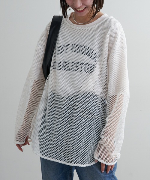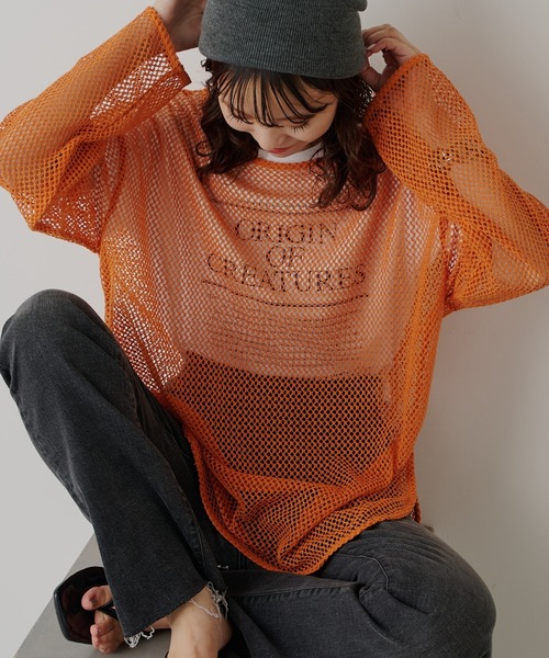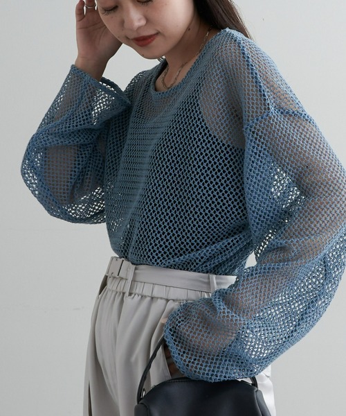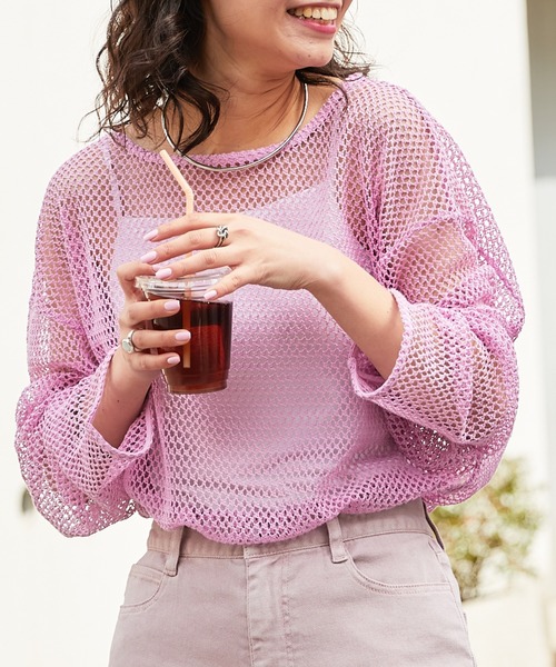 参考商品名:コットンメッシュ編みカットソー