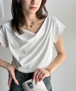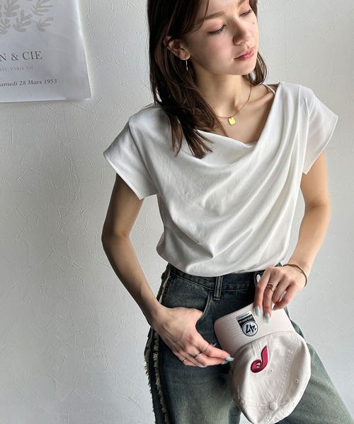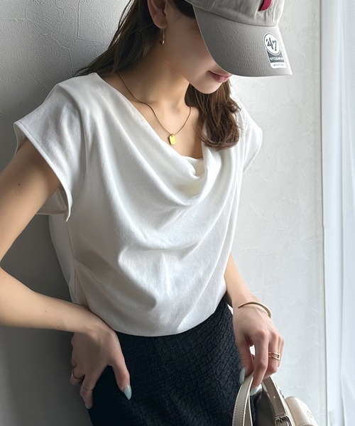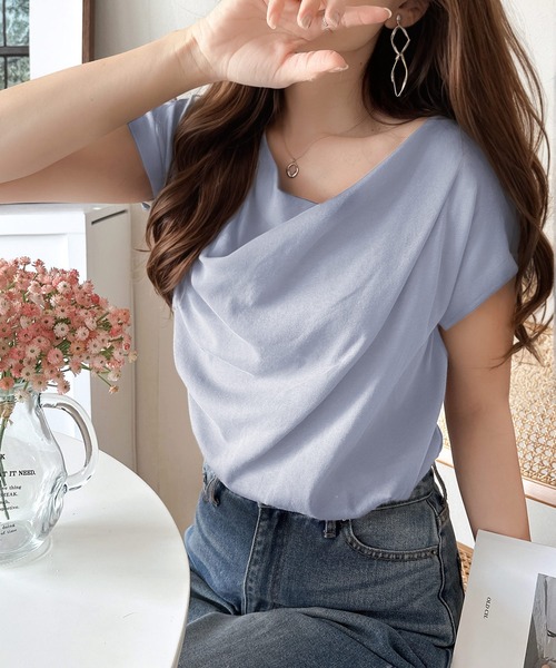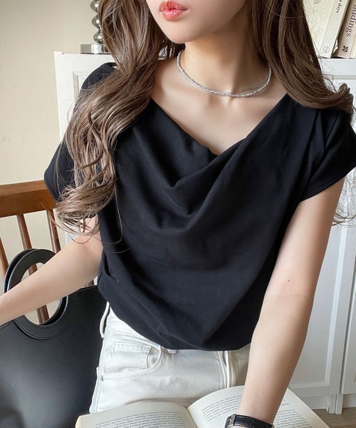 参考商品名:空気を含んだような軽やかさ。綿100%オフショルドレープフレンチプルオーバー