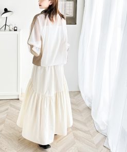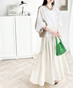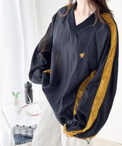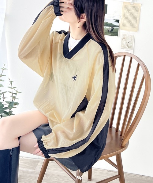参考商品名:レトロ配色が今っぽ!胸刺繍配色シアー裾ドロストVネック オーバーサイズ プルオーバー