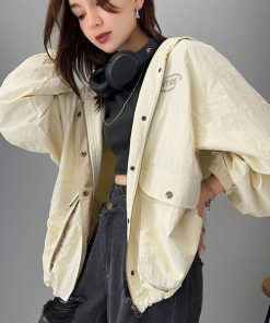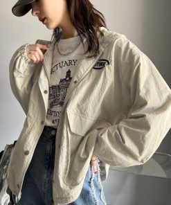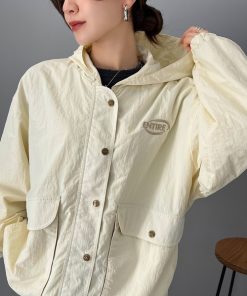 キーワード:ブルゾン アウター レディース ジップ ナイロン フード ワンポイント 刺繍 無地 WEB限定 ストリート スポーティー ピクニック レジャー 公園 秋 大人カジュアル 定番 旅行