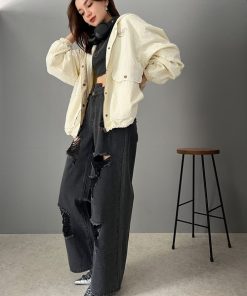 classicalelf ブルゾン アウター メンズライクなのに可愛く決まる。裏フリース胸刺繍配色トレーニングフード付きブルゾン レディース
