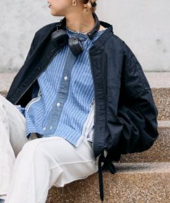 classicalelf ブルゾン アウター メンズライクなのに可愛く決まる。裏フリース胸刺繍配色トレーニングフード付きブルゾン レディース