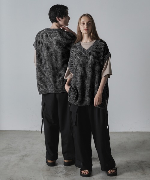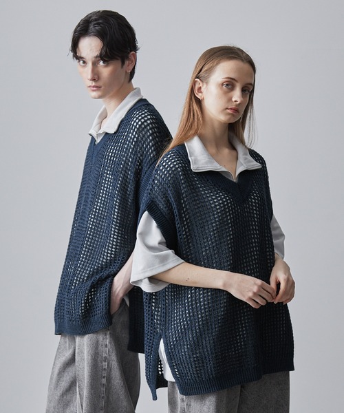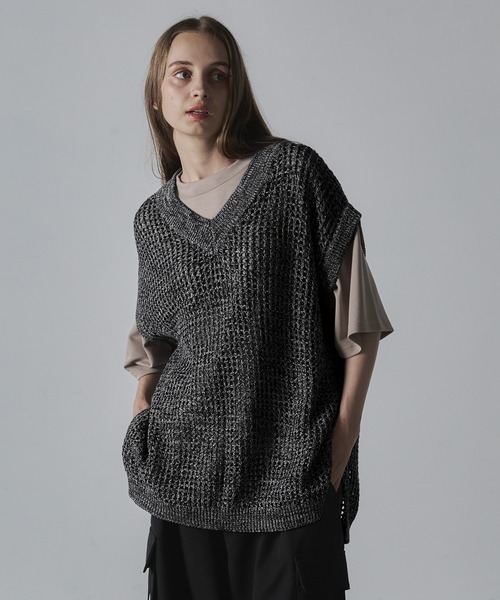 参考商品名:【CLEL】Watermark Knitting Loose Mesh Vest/透かし編み ルーズ メッシュニットベスト