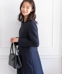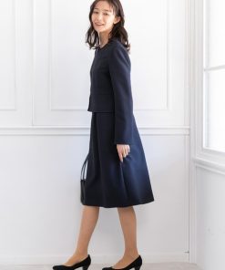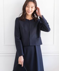商品名:【お受験】ノーカラー&フレアワンピース セットアップスーツ/学校行事/ママスーツ/学校説明会/七五三