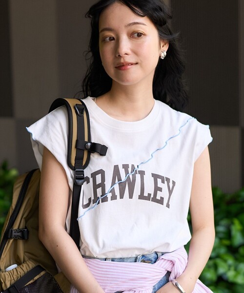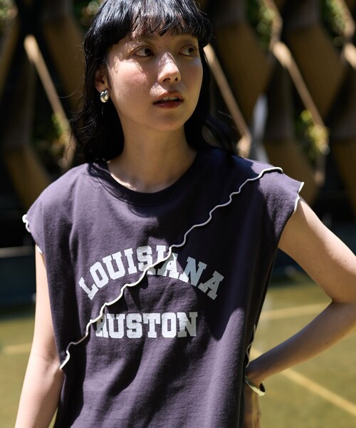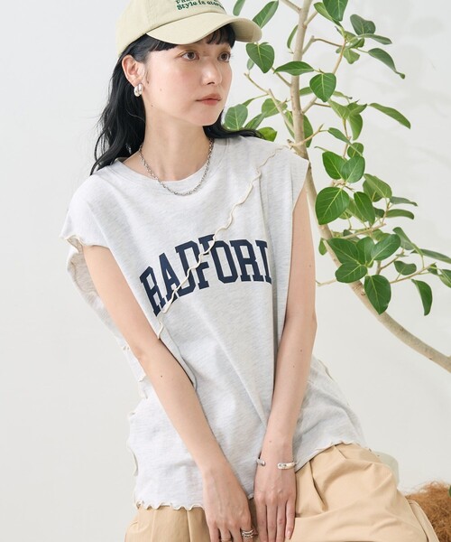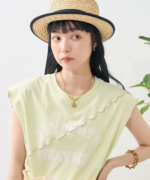 参考商品名:配色メロー ロゴフレンチスリーブTシャツ