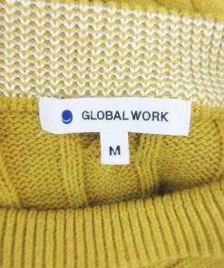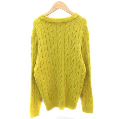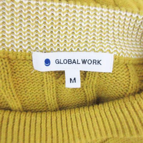 GLOBAL WORK グローバルワーク ニット セーター 長袖 クルーネック ケーブル編み M イエロー 黄色 /YM32 メンズ