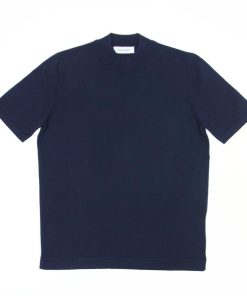 Gran Sasso グランサッソ モックネック ニット GRAN SASSO 半袖 12ゲージ コットン ニットT ニットカットソー ハイゲージ 58109 18120 ネイビー 国内正規品