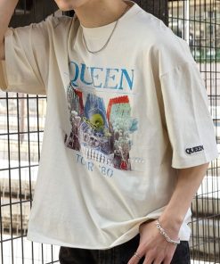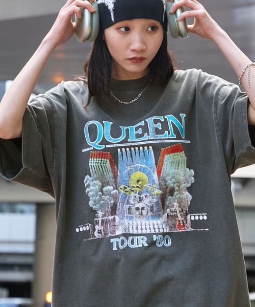参考商品名:【QUEEN/THE ROLLING STONES/Aero smith/BON JOVI】別注 ヴィンテージライク ロックプリントピグメント加工 半袖Tシャツ
