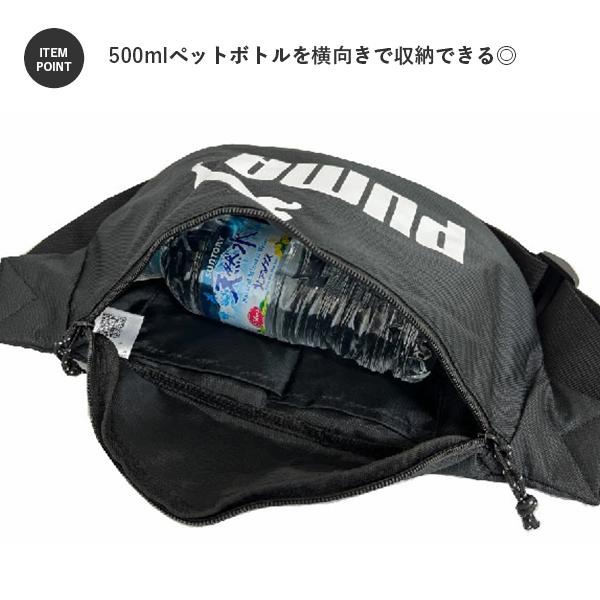pumaのウエストバッグです。シンプルながらプーマのロゴがワンポイントに◎メインルームは500mlのペットボトルも横向きに収納可能です。アウトポケットもありシンプルながら収納力もしっかり。小学生、中学生、 高校生などの学生さんから新社会人などビジネスマンにもおすすめ。素材も扱いやすいポリエステルでカジュアルシーンはもちろん旅行やサッカー遠征のサブバッグにもピッタリ!