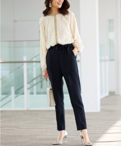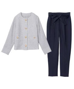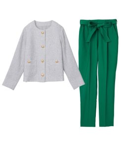 RANAN 【2点セット】メタル調ボタンノーカラージャケット&パンツスーツ