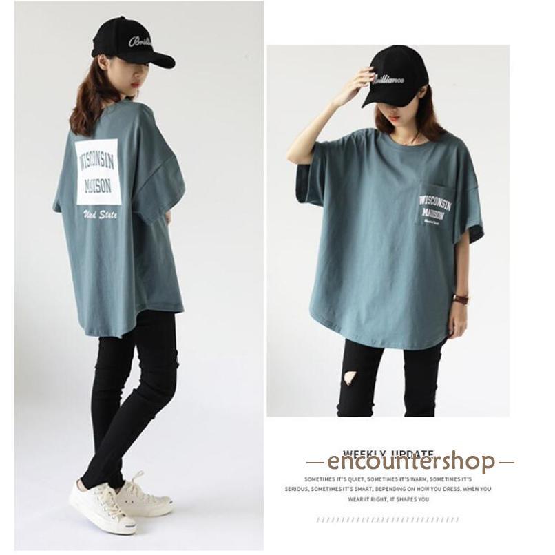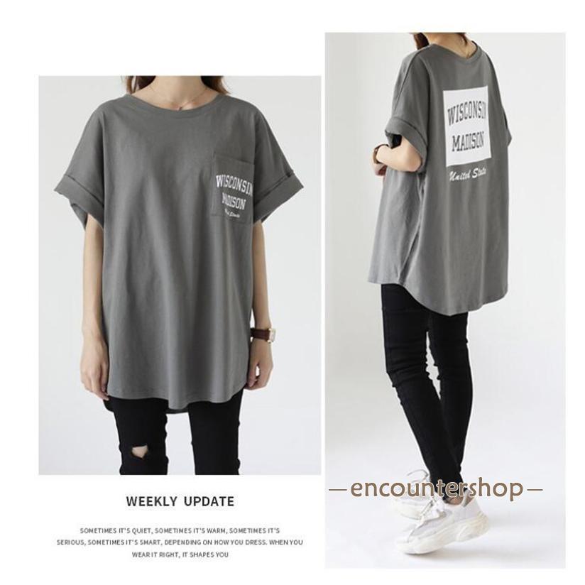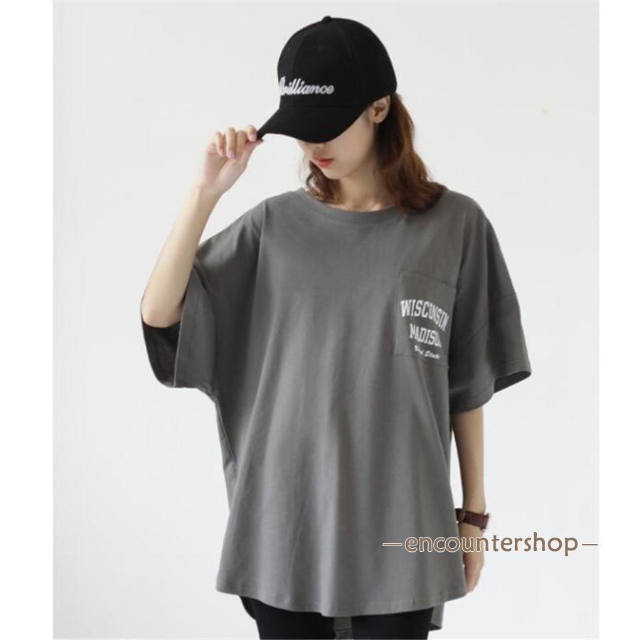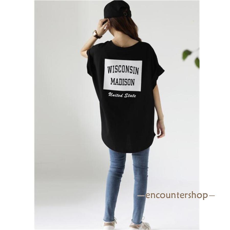 Tシャツ レディース カットソー 半袖 tシャツ 大きいサイズ ロング丈 ロングT トップス 体型カバー 上着 夏服 着痩せ ゆったり 無地 おしゃれ
