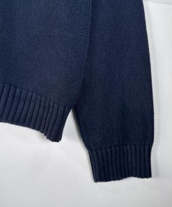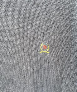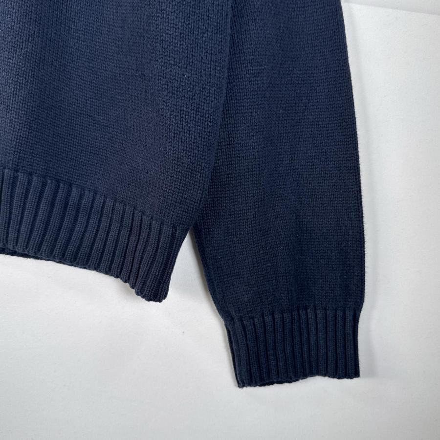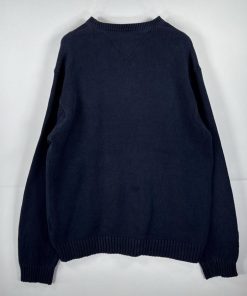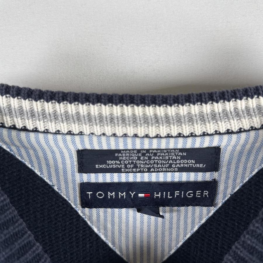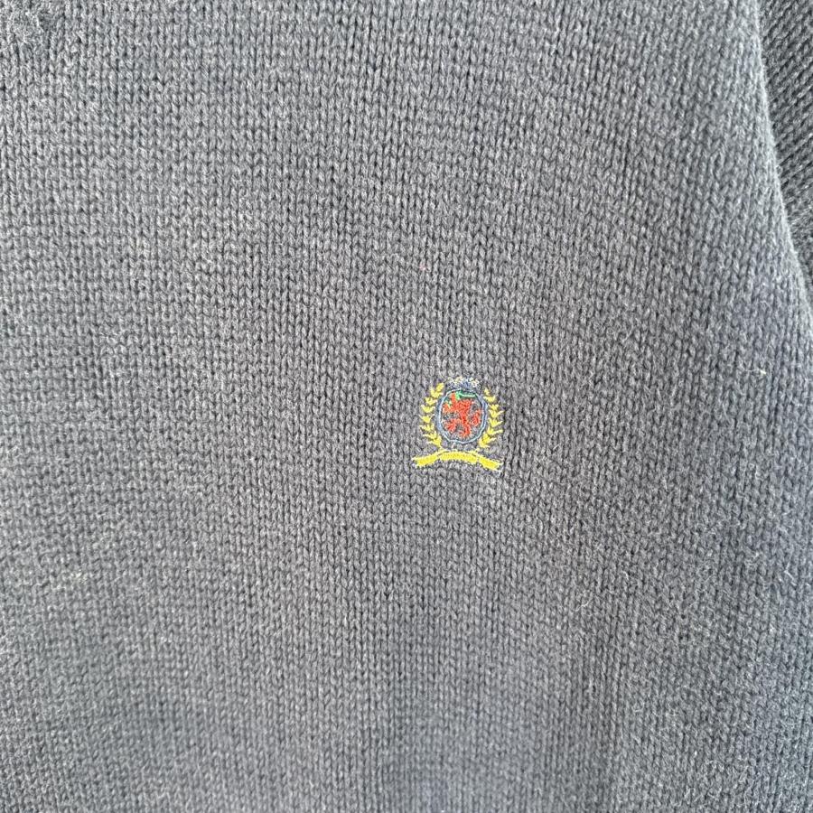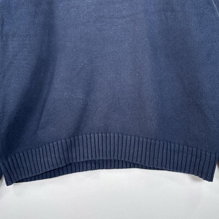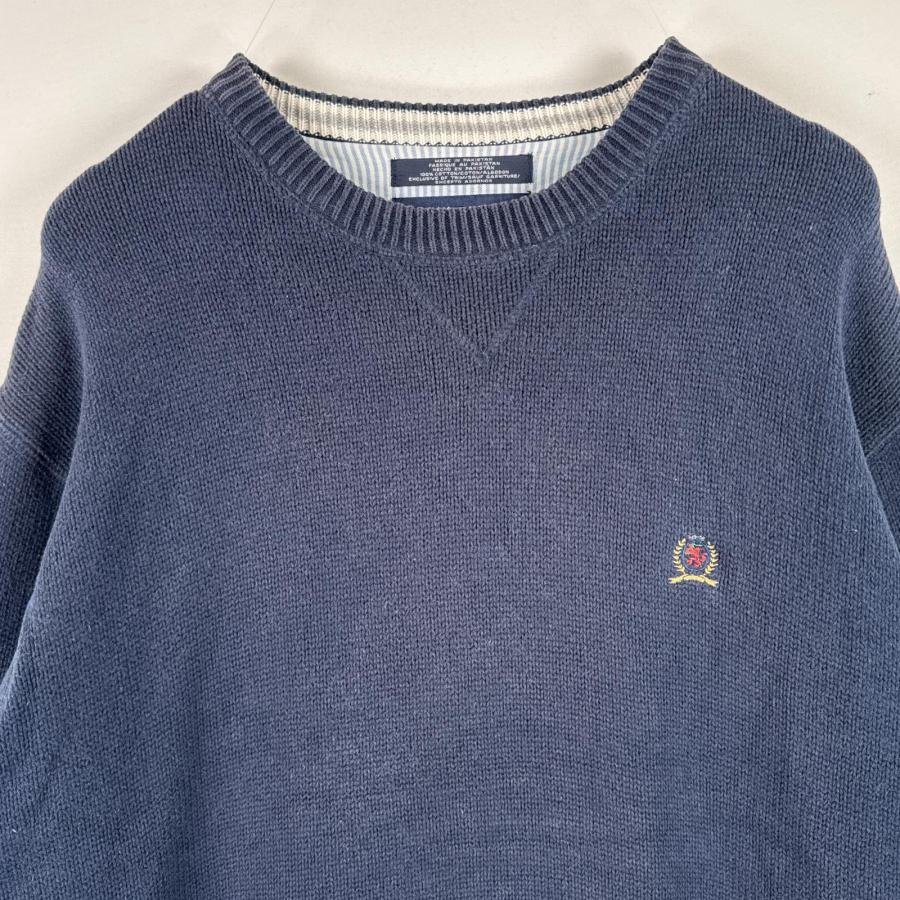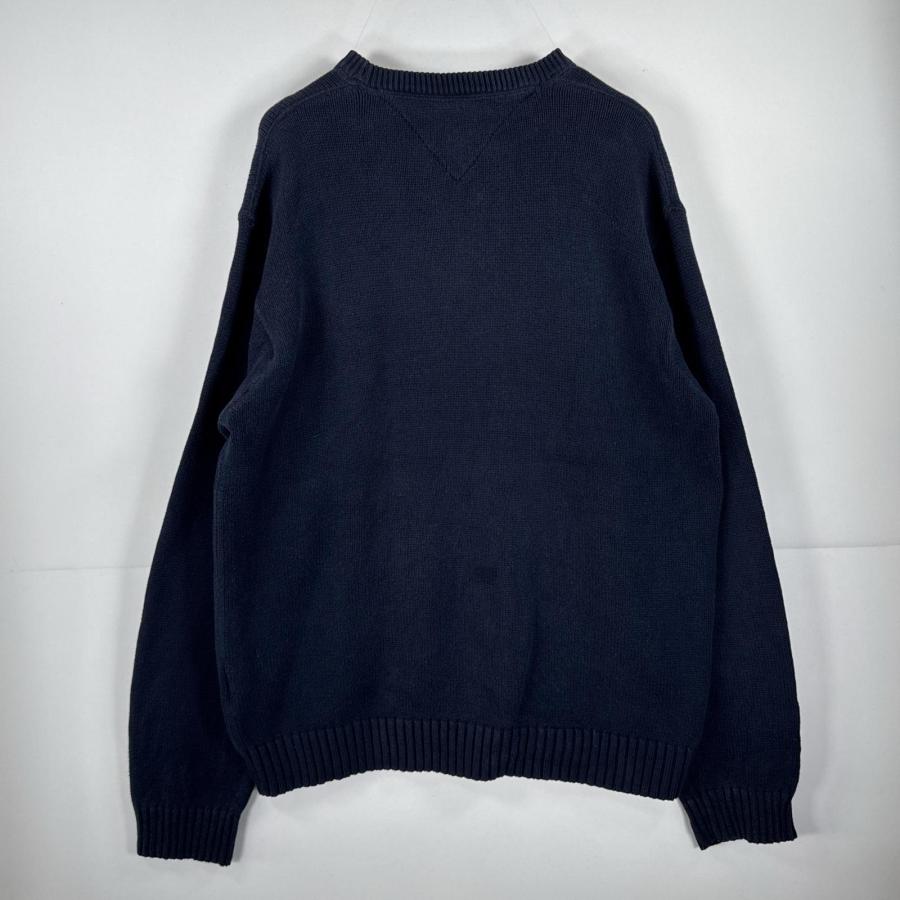 USA古着 トミーヒルフィガー TOMMY HILFIGER 長袖 ニット クルーネック ワンポイント 刺繍 セーター コットン XL ネイビー 無地 メンズ